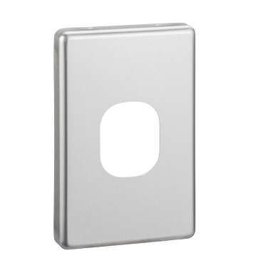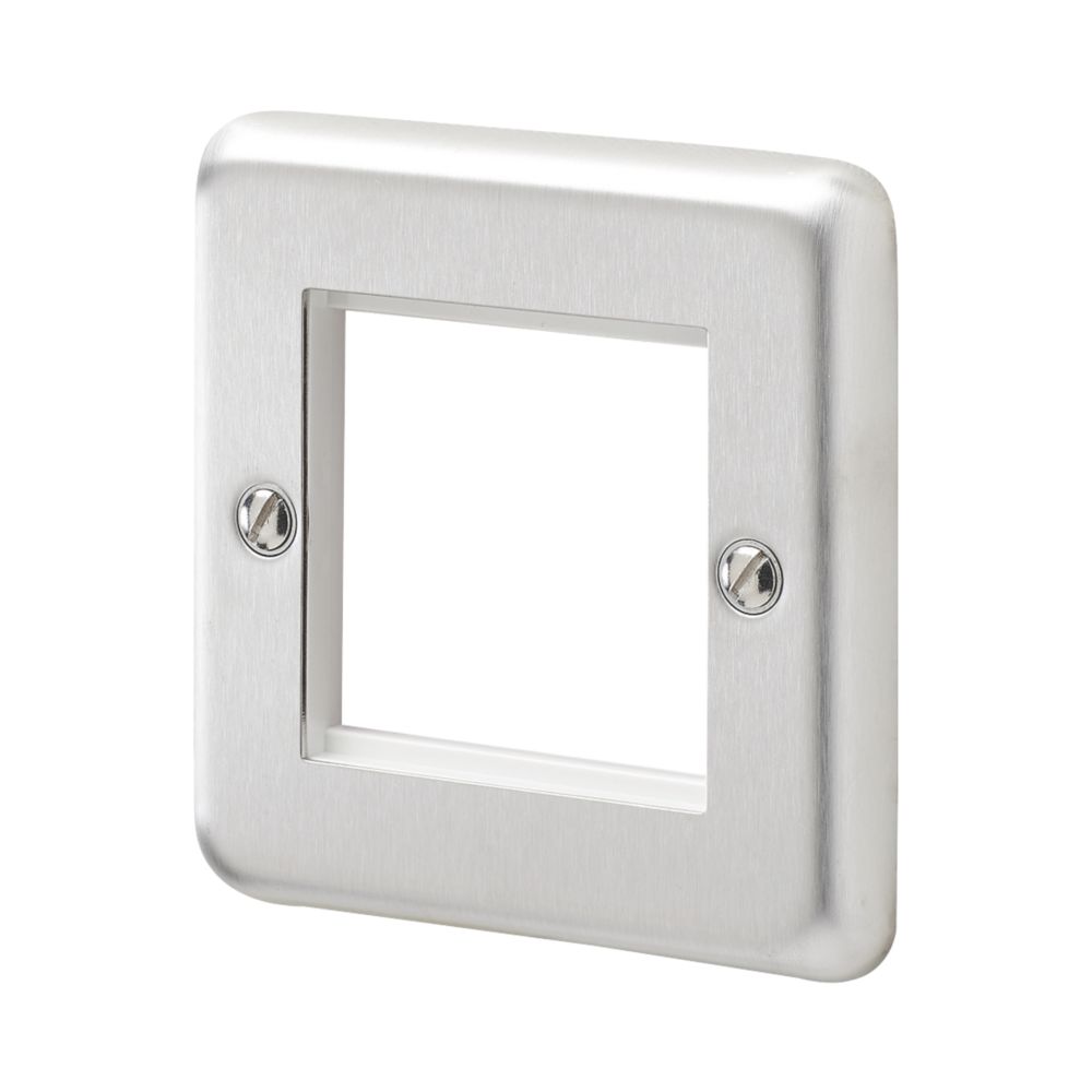 Brushed stainless steel light switch surround.